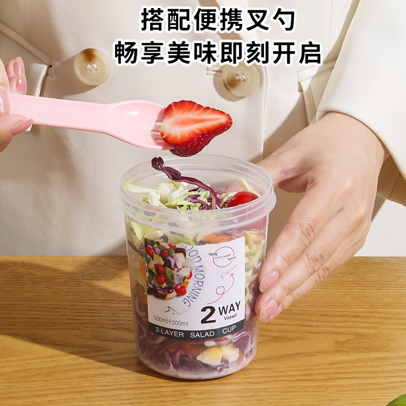 | nameOriginal | Factory Direct supply plastic double-layer light food breakfast salad cup with spoon lid fork sealed portable for students going out |