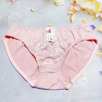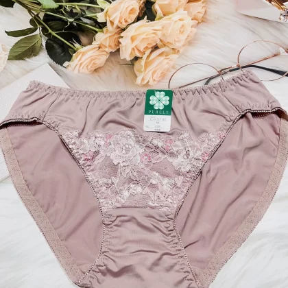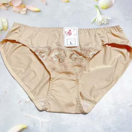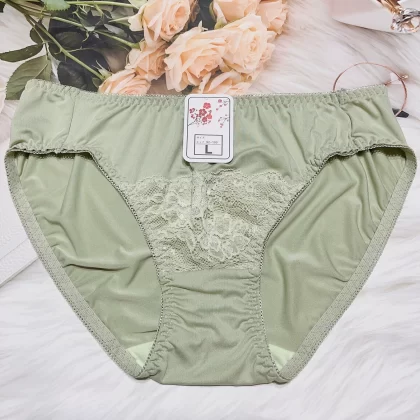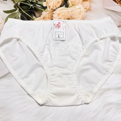ملابس داخلية نسائية منتصف الخصر بخياطة دانتيل حرير الحليب الأصلية المعالجة من المصنع الأصلي بلون سادة مريح