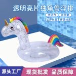 Factory spot inflatable toys ins thick transparent sequins unicorn floating Pegasus Mount swimming ring wholesale
