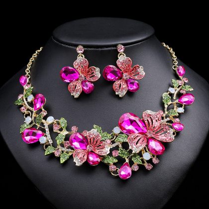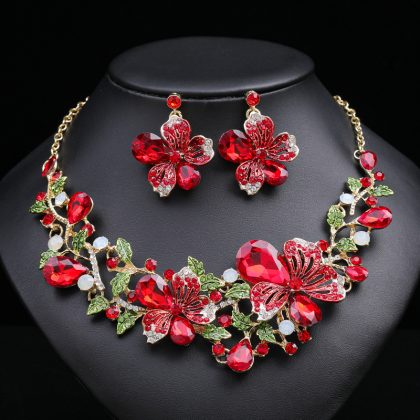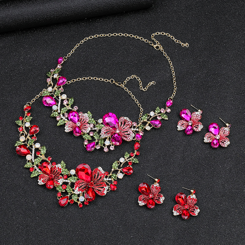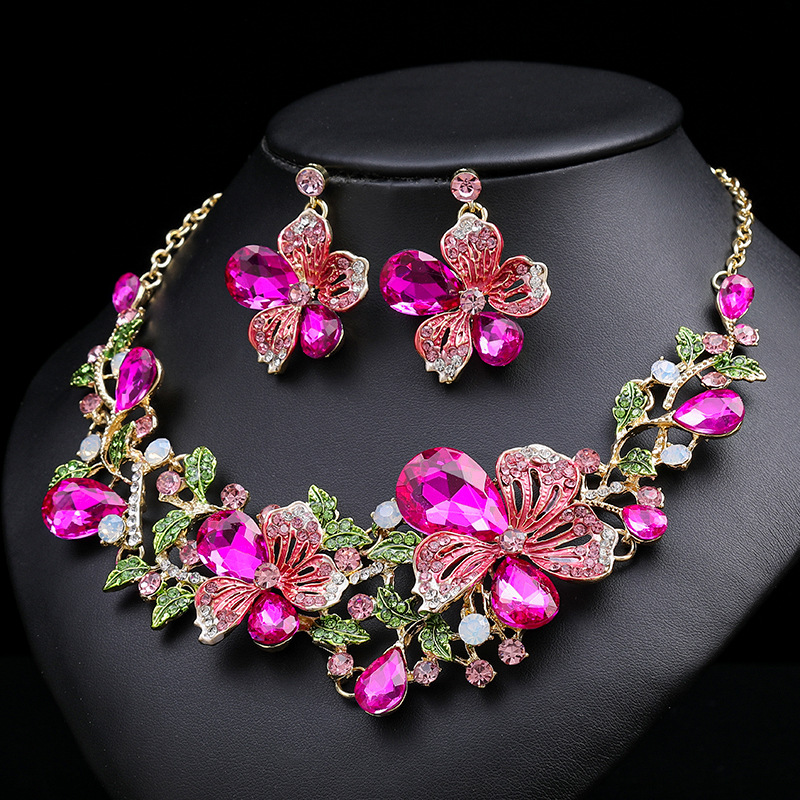 Factory wholesale European and American necklace earrings two-piece color flower bride retro high design sense multi-color optional