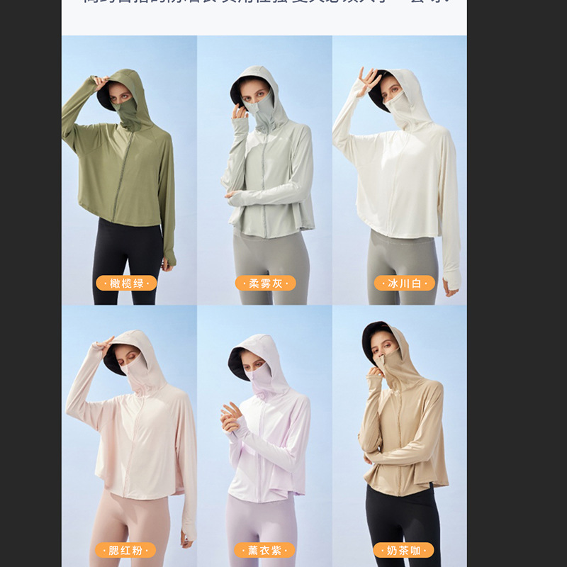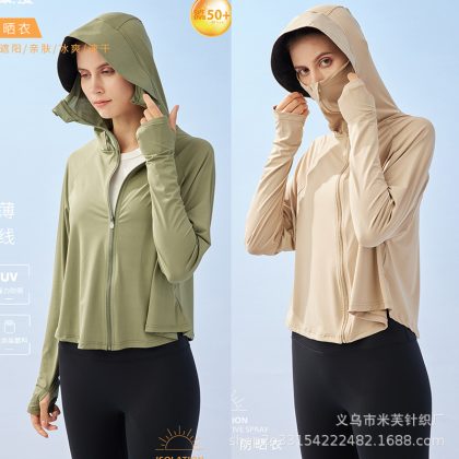 مصنع الجملة T527 الفينيل واقية من الشمس UPF50 المضادة للأشعة فوق البنفسجية الجليد الجليد العضلات سرعة غطاء معطف قناع المرأة