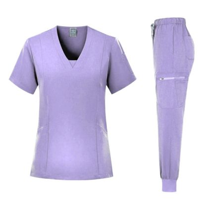 | nameOriginal | Factory wholesale v-neck split surgical clothes suit Women's Hospital hand brush clothes elastic short sleeve nurse work clothes printing |