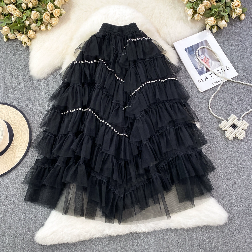 الجنية Diamond Diamond Mid -Knee -Knee Net Gauze Skirt