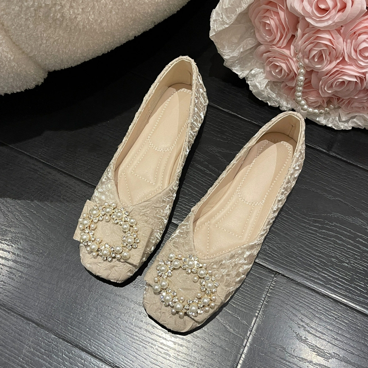 Fairy high-end summer square toe shallow mouth soft sole shoes