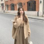 الجنية نمط سوبر الجنية لطيف كسول نمط سترة معطف المرأة الخريف والشتاء 2023 جديد فضفاض ملابس خارجية سترة مشغولة من الصوف