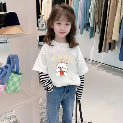 | nameOriginal | Fake Two-piece Girls' Autumn Top Long-sleeved T-shirt 2024 New Early Autumn Dress Baby Girl's Striped Children's Base Shirt |