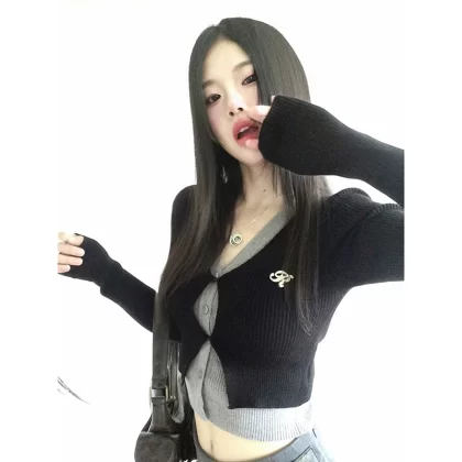 | nameOriginal | Fake two piece short v-neck sweater coat sweater |
