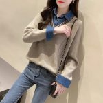| nameOriginal | Fake two-piece stitching Denim shirt collar sweater women's autumn new knitted loose all-match bottoming shirt top women's outer wear |