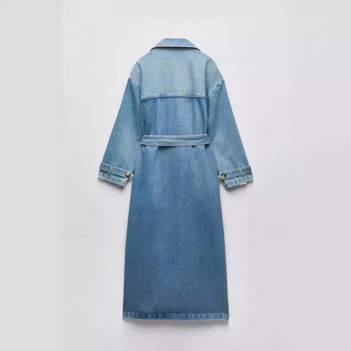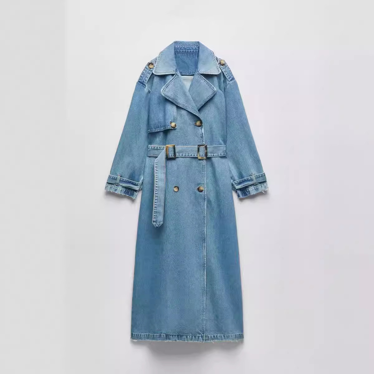 | nameOriginal | Fall 2023 European and American style new fashion double breasted belt decoration women's all-match Denim coat coat windbreaker |