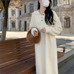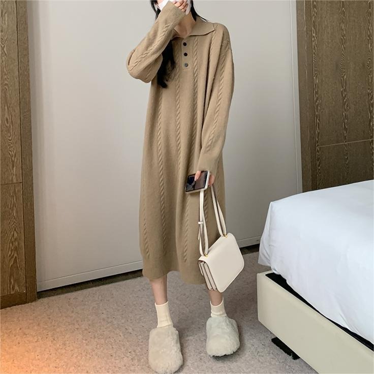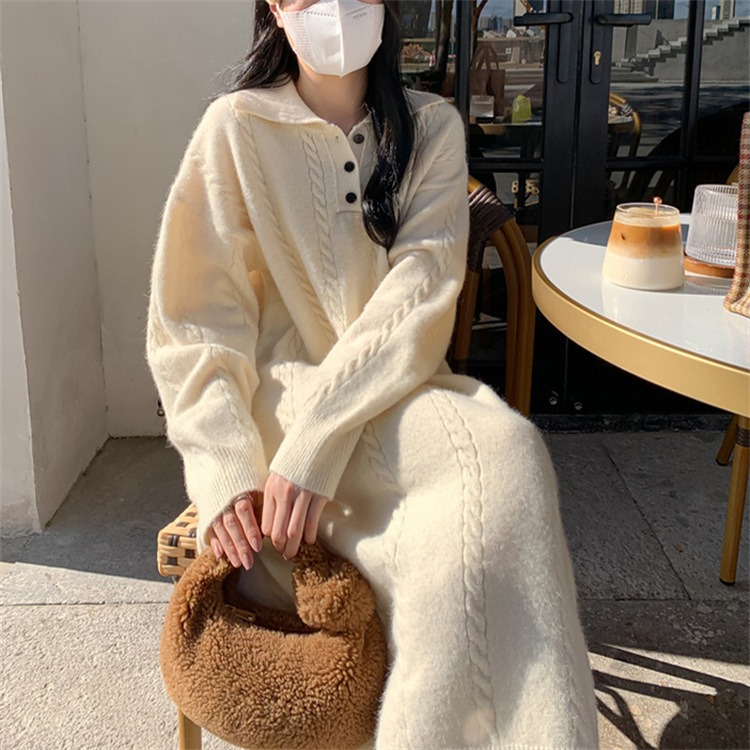 Fall 2023 Japanese style new lazy style lapel twist sweater dress women's loose soft glutinous long knitted dress