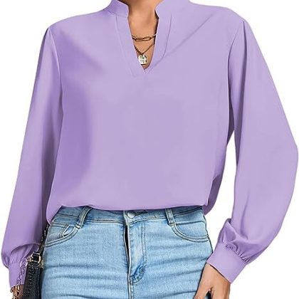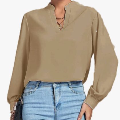 خريف 2024 قميص فضفاض نسائي جديد عبر الحدود من أمازون AliExpress بأكمام طويلة ورقبة على شكل حرف V متوفر في المخزون