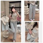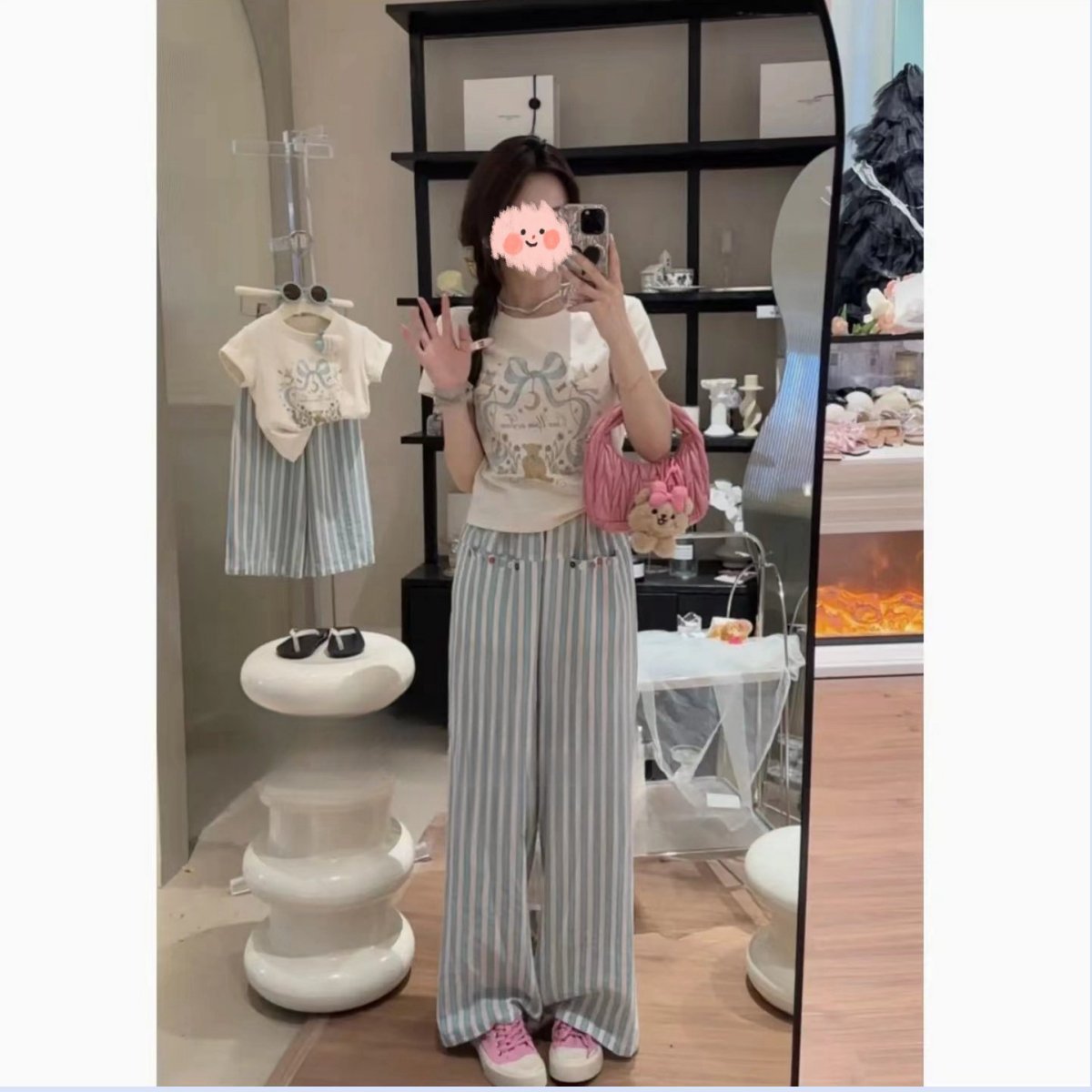 | nameOriginal | Family Clothing Korean Style New 2024 Summer Design Bow Short Sleeve Striped Wide Leg Pants Mother and Dresses |