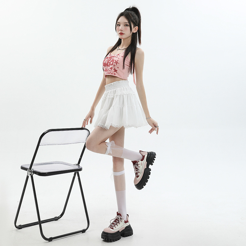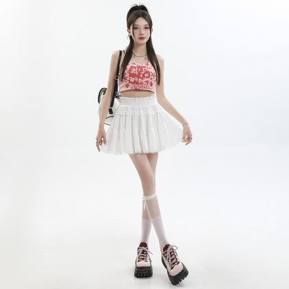 | nameOriginal | Fashion Ballet Style White Lace Half-length Skirt Women's 2024 Summer New Style Puffy Pleated Skirt for Petite |