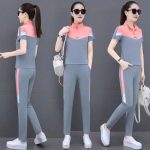 بدلة رياضية غير رسمية على الموضة للسيدات 2024 صيف جديد بأكمام قصيرة طقم نسائي رقيق وفضفاض مكون من قطعتين مع ياقة عمودية بدلة جري