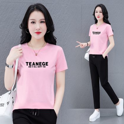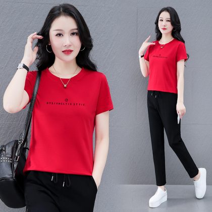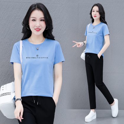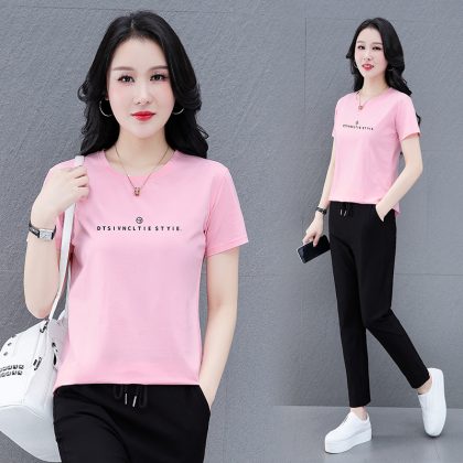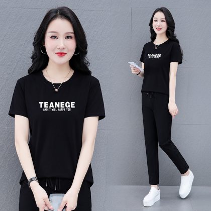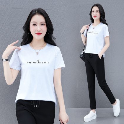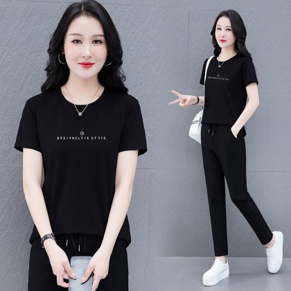 | nameOriginal | Fashion Casual Sports Suit Women's Summer 2024 New Cotton Age-Reducing Slimming Loose Short-Sleeved Trousers Two-Piece Set |