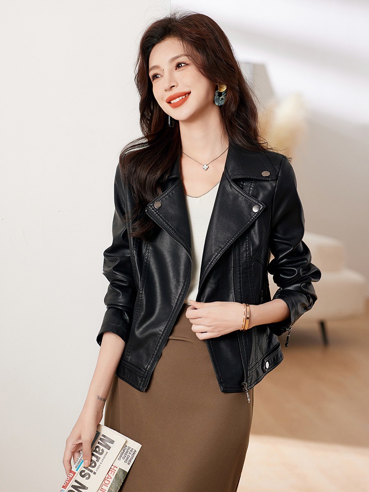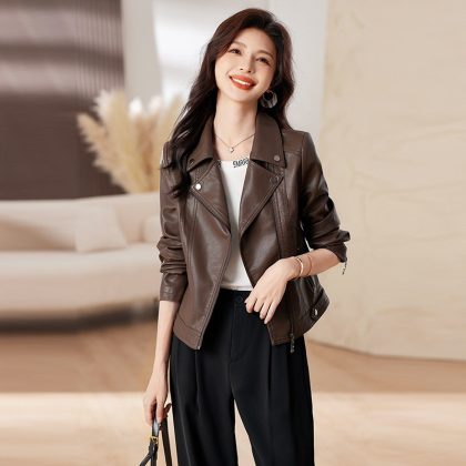| nameOriginal | Fashion Commuter Elegant Lapel Coat Women's New Simple and Generous All-match Solid Color Motorcycle Leather Coat for Autumn 2024 |