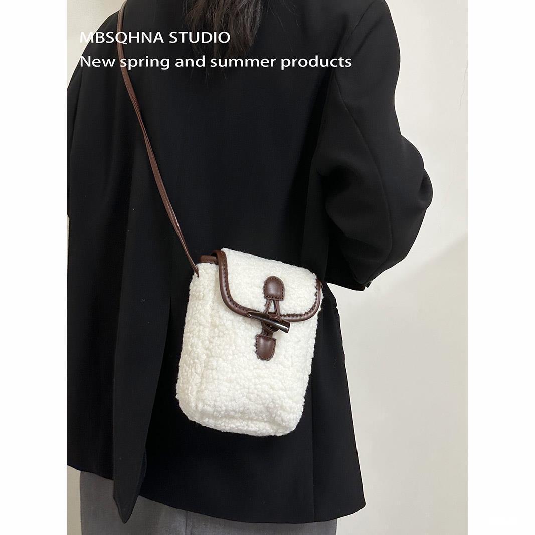 Fashion Lamb Wool Small Bag Women's 2023 Winter New Plush Mobile Phone Bag Crossbody Bag