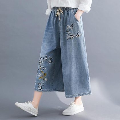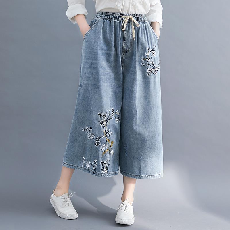| nameOriginal | Fashion plus size Flesh Covering Loose Waist Embroidered Cropped Jeans Spring and Summer 2024 New Loose High Waist Wide Leg Pants for Women |