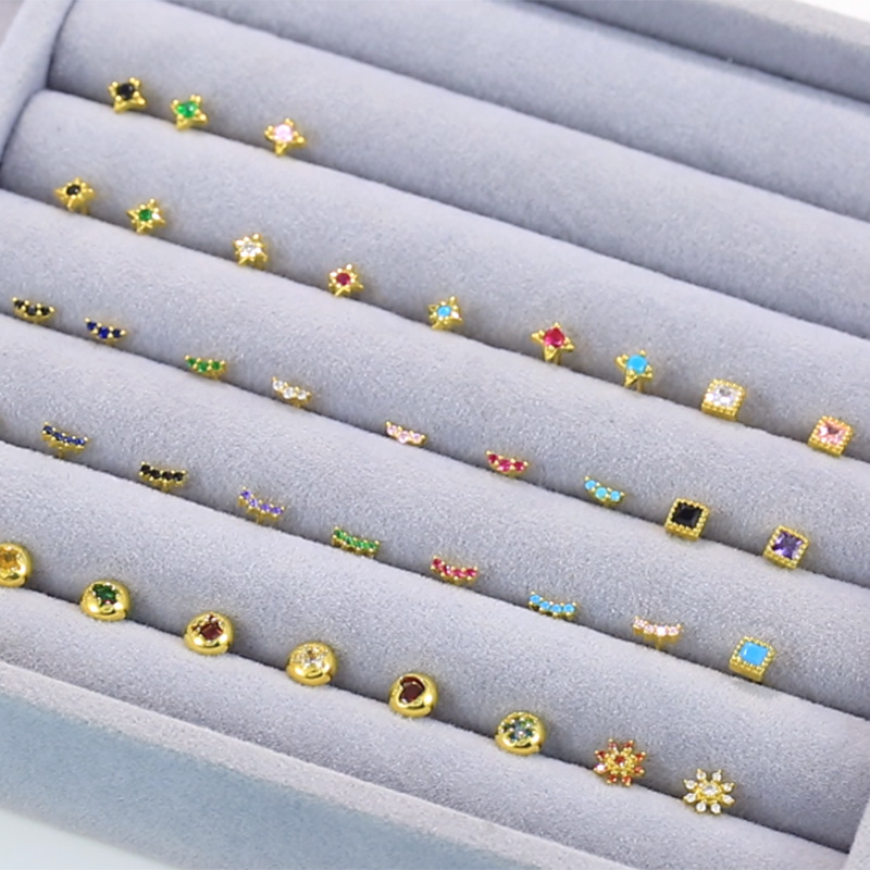 nameOriginal | Fashion s925 sterling silver piercing ins style simple all-match three mini diamond-embedded moon thread piercing ear studs |