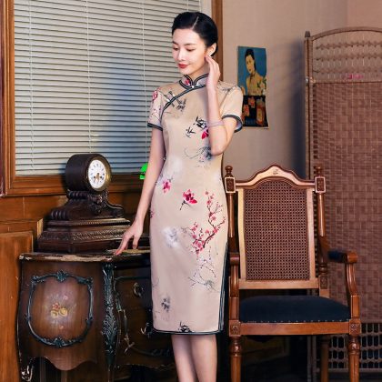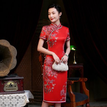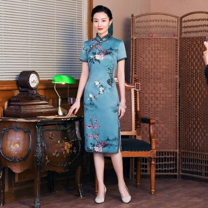 | nameOriginal | Fashion Seiko Diamond Silk Cheongsam Summer Women's 2024 New Short Sleeve Daily Chinese Style dress Banquet Mid-length |