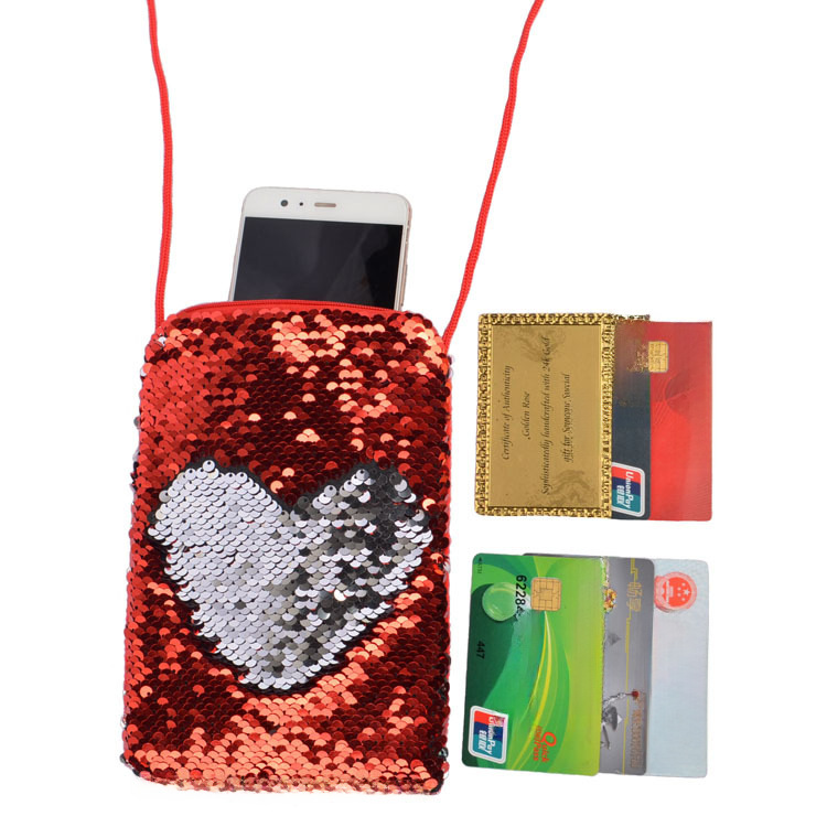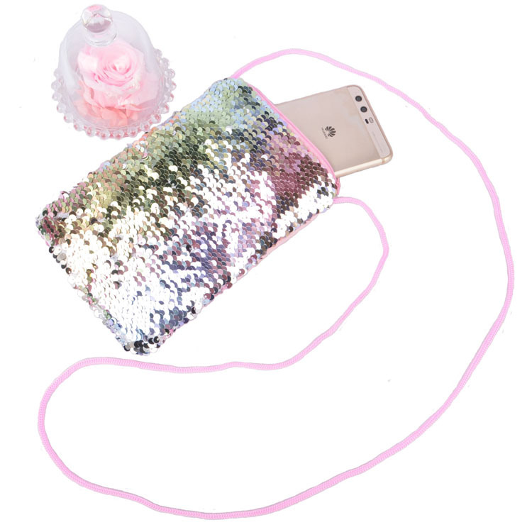 | nameOriginal | Fashion sequins mobile phone bag women's Fabric mobile phone bag hanging neck sports arm bag vertical coin purse mermaid bag wholesale |