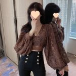 | nameOriginal | Fashion Small Sexy Deep Collar Slim-Fit Design Sense Back Hollow Strap Bat Sleeve Fairy Short Lace Top |