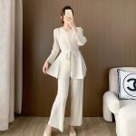 بدلة على الموضة لباس نسائي ربيعي راقي 2024 سروال جديد مطوي بأكمام طويلة طقم غير رسمي مكون من قطعتين