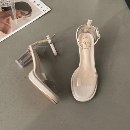 الموضة القبلية مثير الكعب السميك المفتوح اصبع القدم الأزياء