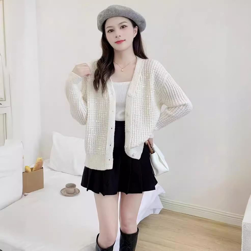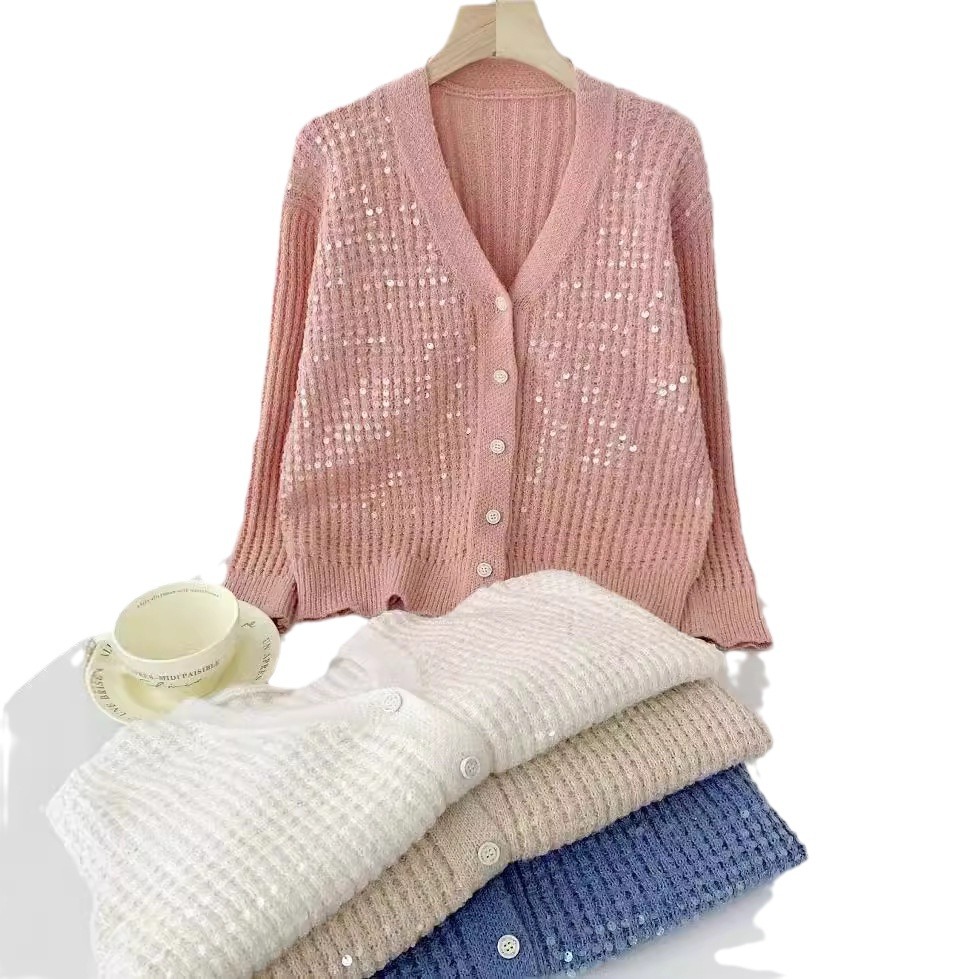 | nameOriginal | Fashion V-neck Heavy Industry Sequin Knitwear Women's 2024 Autumn New Fashionable Age-reducing Joker Sweater Women's Cardigan |