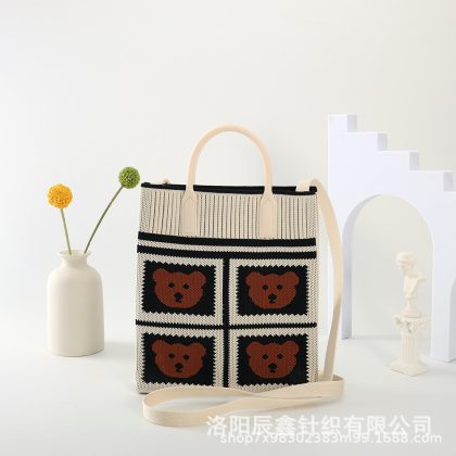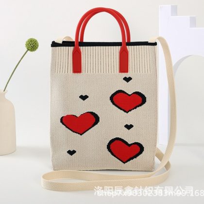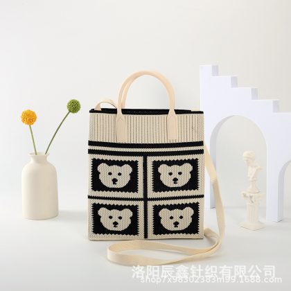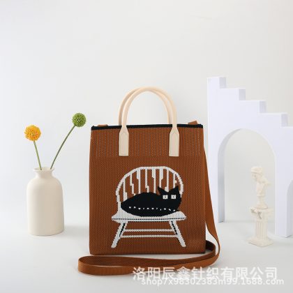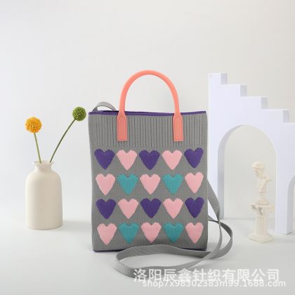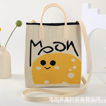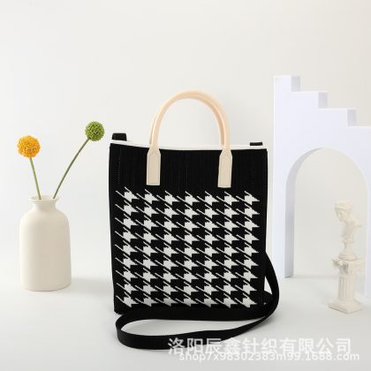Fashionable and elegant mother bag knitted bag explosive open hand bag geometric figure new messenger bag knitted mobile phone bag