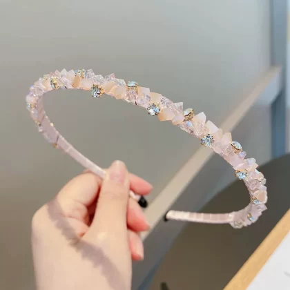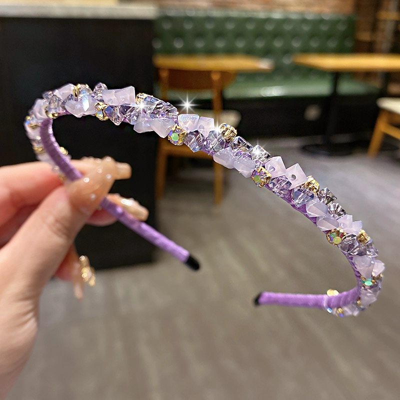Fashionable and versatile light blue crystal internet celebrity bangs headband