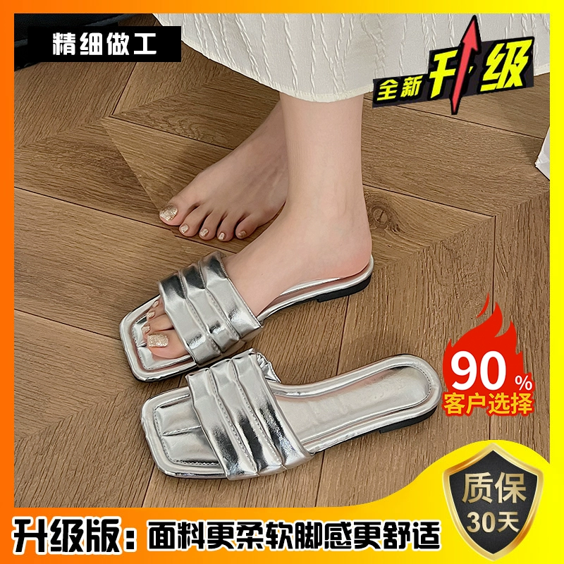 | nameOriginal | Fashionable and versatile silver non-slip soft-soled slippers for summer outer wear |