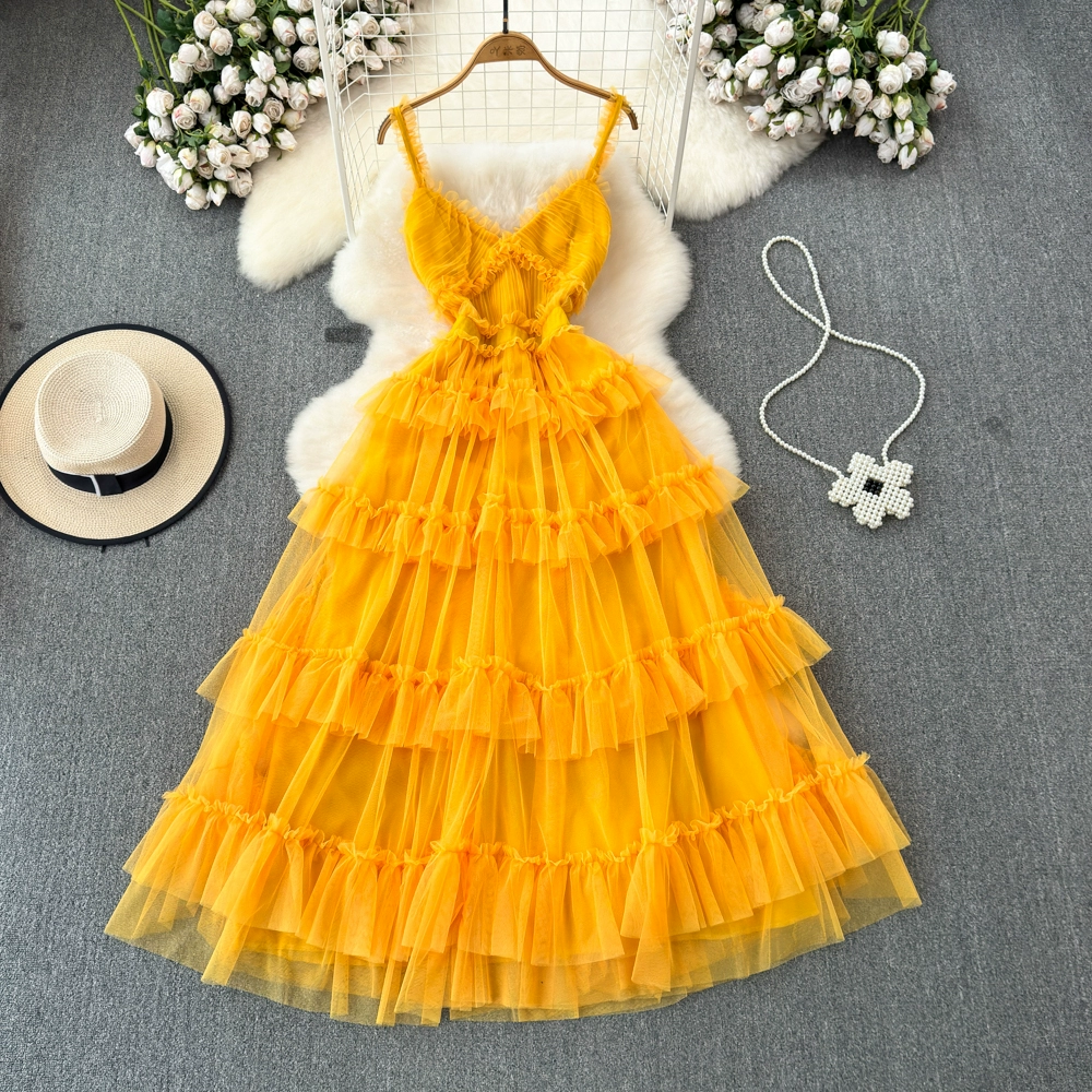Fashionable backless irregular mesh cake suspender skirt