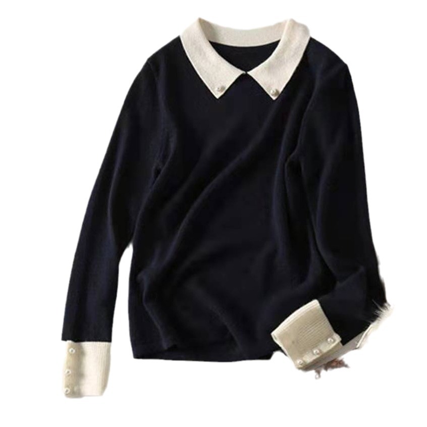 | nameOriginal | Fashionable beaded contrast color wool sweater for women 2023 autumn and winter New loose slimming age-reducing long sleeve sweater top fashion |