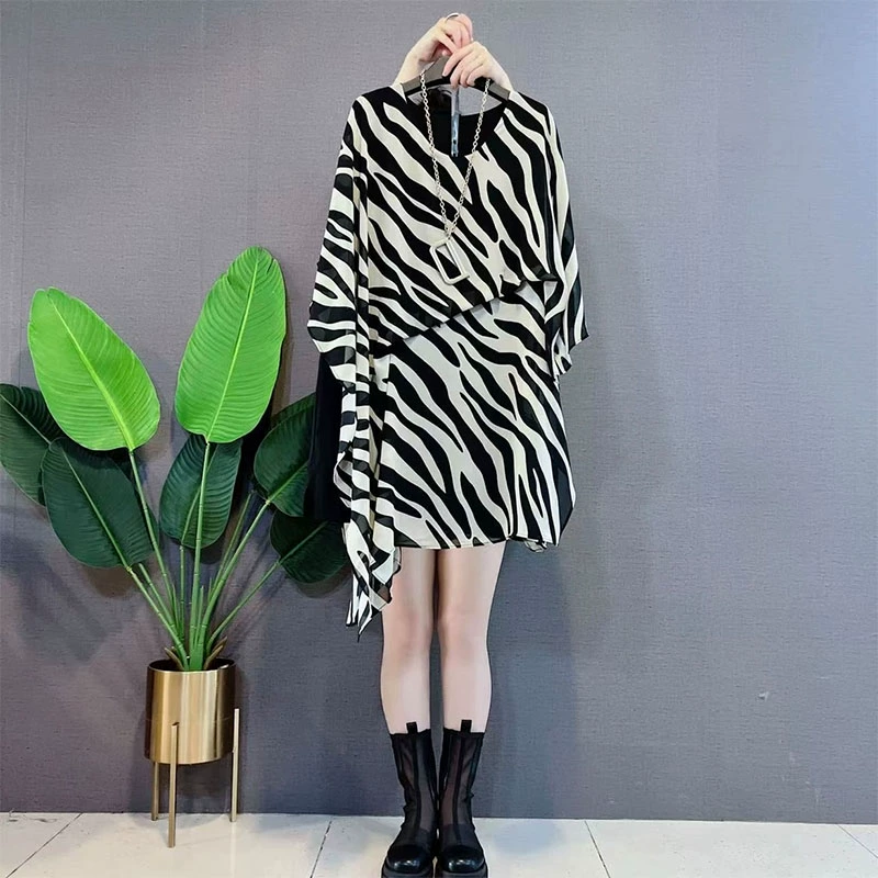 Fashionable casual chiffon dress that covers the flesh and makes you look slimmer and fatter