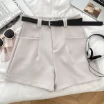 | nameOriginal | Fashionable commuter simple double pocket high waist slim suit shorts casual pants a line wide leg pants with belt for women |