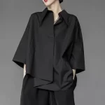 قميص غير متماثل بتصميم عصري للنساء لصيف 2024، قميص أسود غير رسمي فضفاض ومتعدد الاستخدامات