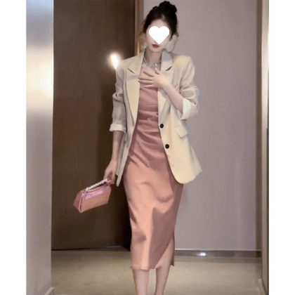 | nameOriginal | Fashionable elegant socialite business dress suit women's autumn 2024 new suit jacket sling dress two-piece suit |