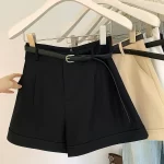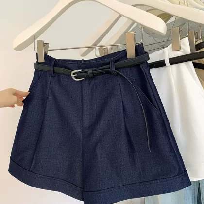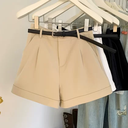 Fashionable high-waisted A-line slimming cuffed casual shorts