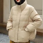 | nameOriginal | Fashionable Korean style large pocket stand collar two-button down jacket women's slimming winter white duck down short loose coat fashion |