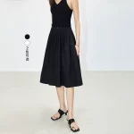 Fashionable LILY retro A-line pleated skirt with drawstring