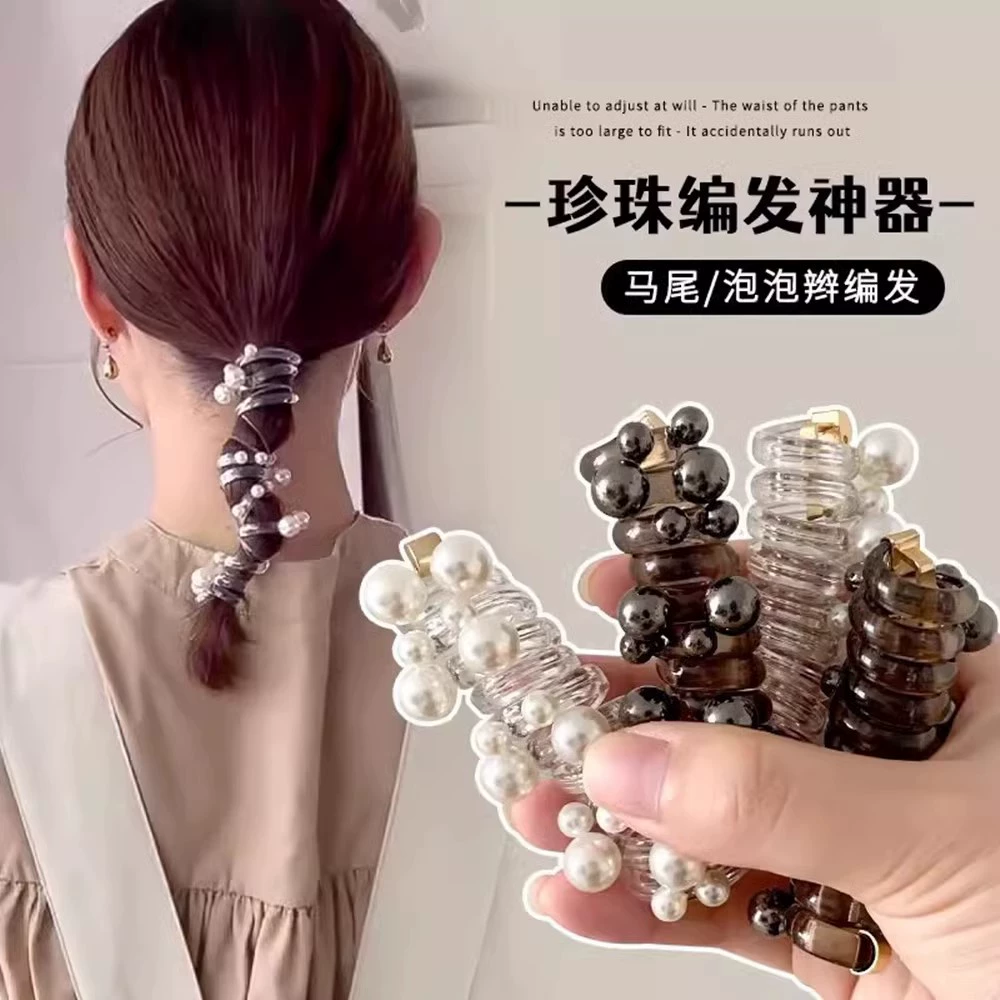 Fashionable pearl phone cord bubble braid with ponytail hair rope