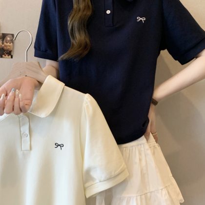 | nameOriginal | Fashionable Short Sleeve Summer Polo Shirt with Front Shoulder Bow |