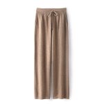 من المألوف بسيط بلون المرأة عالية الخصر بنطال ذو قصة أرجل واسعة فضفاض غير رسمي اللف عالية الكشمير جديد محبوك السراويل لباس خارجي