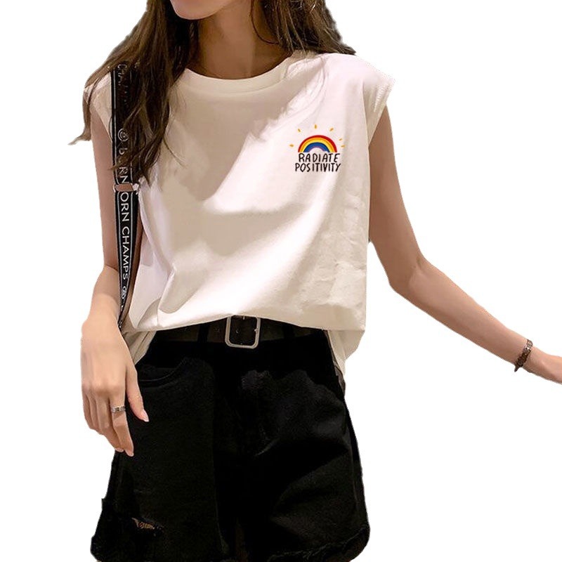 | nameOriginal | Fashionable Sleeveless T-Shirt Vest Women's Clothing Summer Outer Wear Fashionable White Loose Student Inner Wear Sports Top Fashionable Instagram |
