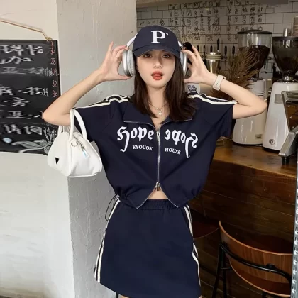 Fashionable sports casual blue skirt two-piece set