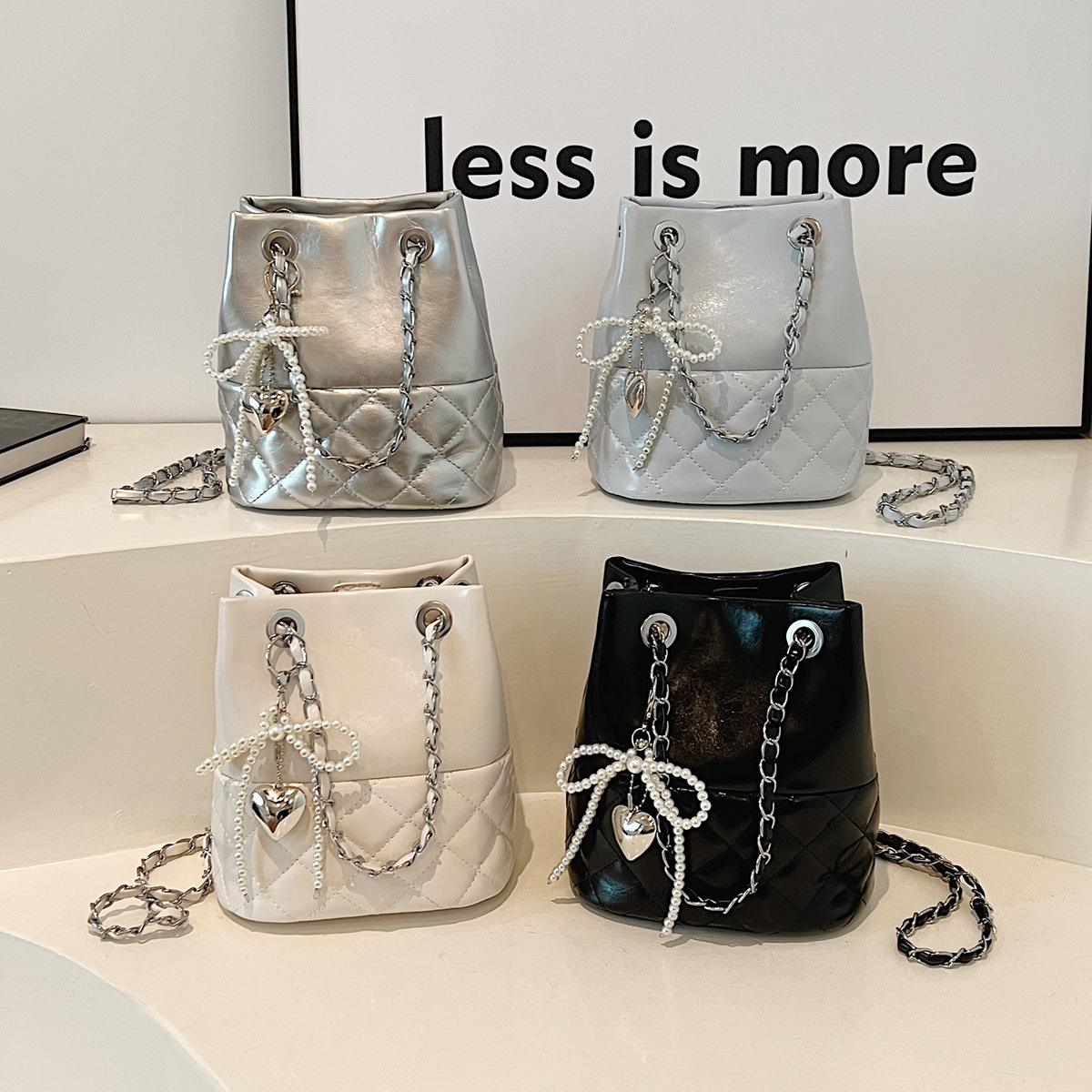Fashionable Textile New Arrival Chain Bucket Small Bag Women's 2024 Spring and Summer All-match Rhombic Chanel Style Shoulder Crossbody Bag