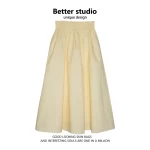 | nameOriginal | Fashionable yellow summer draped mid-length skirt |