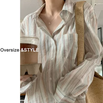 | nameOriginal | Fat girl large size design pure cotton linen striped shirt |
