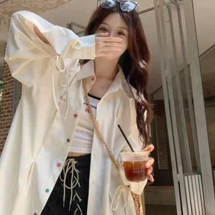 | nameOriginal | Fat Girl Spring and Summer Colorful Button Long Sleeve Shirt |